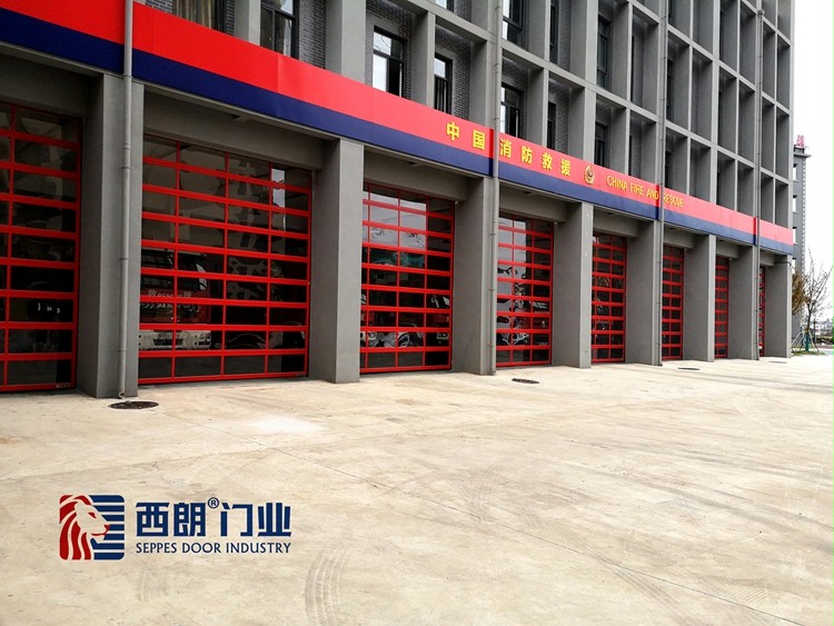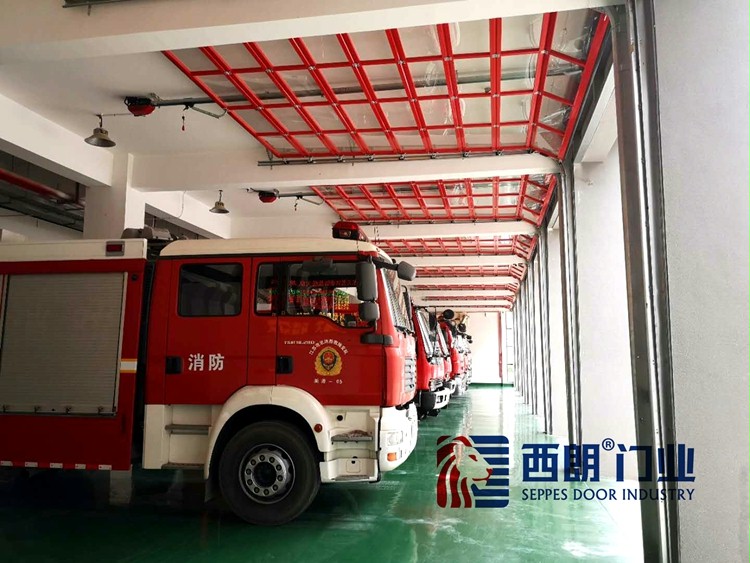 上图为:南京消防中队车库安装的西朗透明消防提升门