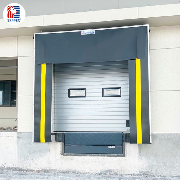 西朗机械式门封帘板采用双层聚酯单纤维弹性强度织物,表面PVC 涂层,侧翼两边采用反光黄色引导条,边框采用铰链式连接抗挤压,顶部框架呈倾斜面便于排水,门罩由前架,后架和连接臂组成,整体框架经过耐腐蚀的镀锌处理,表面采用经过阳极氧化处理的铝合金型材固定和装饰,美观大方。