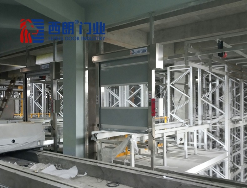 在立体库的出货口会有流水线与外界装卸区连接,货物会随着流水线向外持续运送,为了在不工作状态下,避免有人误操作进入立体库内,所以要在流水线终端安装一个隔断门,因此每件货物通过时都会要求自动门开启和关闭一次,这就对于门的开启速度和开启频次提出了要求,能同时满足的就是西朗快速门。