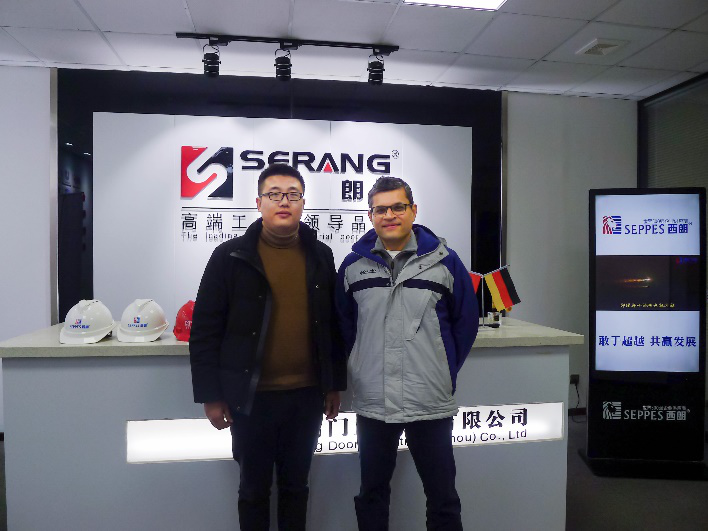 外资工厂客户首先参观了西朗门业展厅,接待人员重点介绍了快速卷帘门、冷库保温快速卷帘门、涡轮硬质快速卷帘门、防护型快速卷帘门、抗风快速堆积门、变频工业提升门、工业门封、装卸货平台等工业门及物流设备产品,并就产品的功能特点、实际使用、技术参数等一一进行交流。