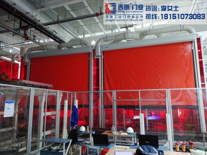苏州西朗的设备防护快速门比常规快速门的门帘材质要厚,pvc门帘厚度达到2.0mm。如果用在焊接、打螺丝的类似设备上,也完全不用担心会划伤门帘。厚实的门帘具有防焊渣、防弧焊、防焊点等耐高温的性能。用起来更安全更放心!门帘的中间也可以选配透明视窗,方便人员观察设备的工作情况。