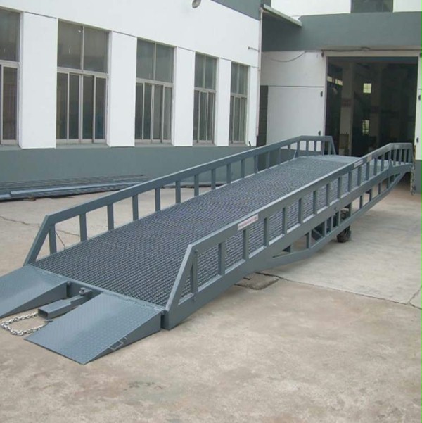 移动式装卸平台:广泛用于无装卸设备的货台及流动装卸场所,是与叉车配合使用的货物装卸辅助设备。借助该登车桥设备,叉车能直接驶入汽车车厢内部进行批量装卸作业。移动式卸货平台大的特点在于移动方便,用于较宽广的场所,不适用场地较小的地方。