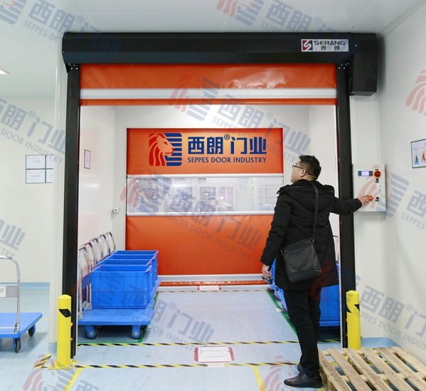 洁净室双门互锁快速门。洁净室常用的防护手段,主要是防止外界的灰尘,颗粒进入无尘区。一般都是由两樘门做互锁,当一樘门处于开启状态的时候,另一樘门是无法打开的。广泛应用于医药,食品,电子车间等场所。