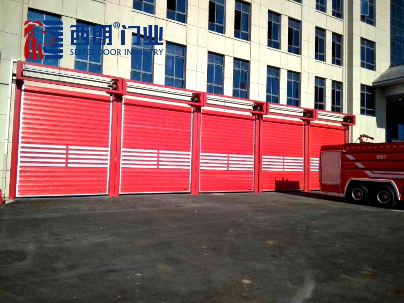 SEPPES消防车库专用红色硬质快速门-集保温、节能、密封、高效、抗风、环保于一身的新型金属工业门,开启速度每秒最高可达2.35米,适用于需要频繁高速的消防队车库。门板采用0.7mm厚双层拉伸板经流水线一次复合成型,中间为聚氨酯发泡填充,每立方容重≥50kg(不含CFC),门板总厚度为40mm.截面设计为断桥隔热结构,具有保温好,重量轻、强度大、抗冲击等特点,抗风等级≤12级。该门型适用于室内外物流及生产的快速通道。该门型的快速开启和关闭使企业在生产及物流的转运速度得到极大地提高,本产品具有很高的可靠性、实用性、易操作及快速修复等特性。驱动控制采用了稳定、节能、准确的伺服系统来保障门体的可靠运行,确保总寿命可达到150万次。