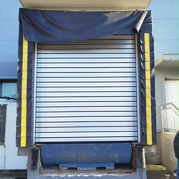 海绵式门封帘布采用聚酯纤维弹性强度织物,表面PVC 涂层,内部填充最大压缩比高达75% 的高弹性能海绵,织物固定使用螺钉和金属扣眼,始终保证受压力时空气均匀地溢出,百褶页分布在两侧和上方,耐磨抗挤压。
